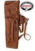 Rückenköcher, gefertigt aus braunem Glattleder und hellem Wildleder.